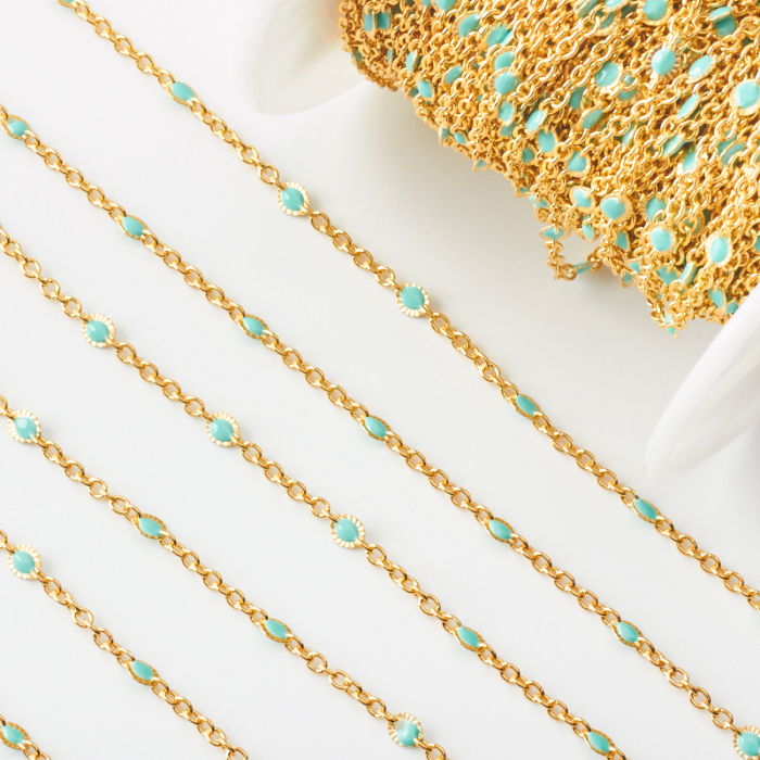 Łańcuszek rombo z turkusowymi oczkami z emalii AG925 pozłacany 3,5mm