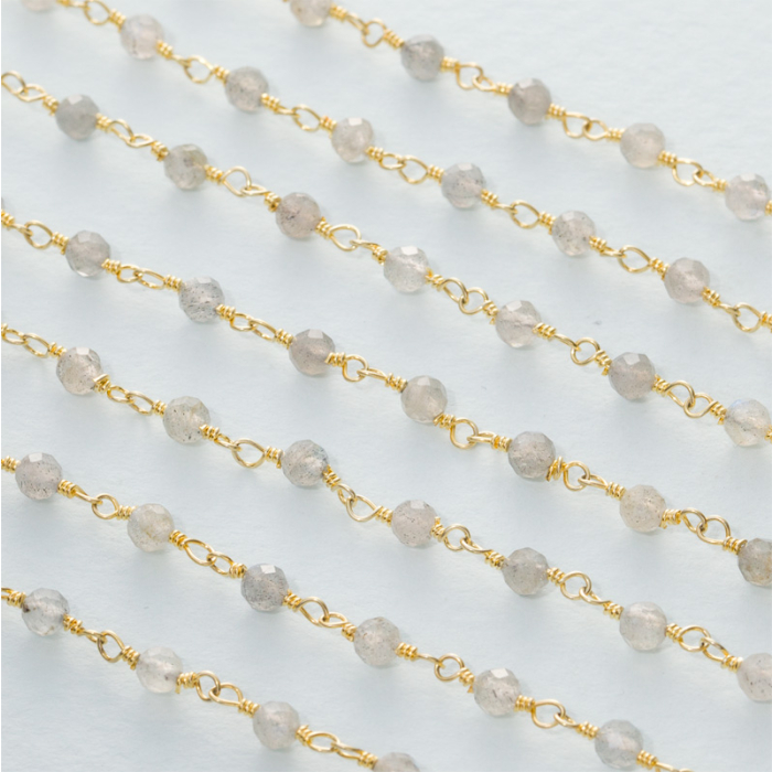 Łańcuszek srebrny pozłacany z labradorytem AG925 4mm