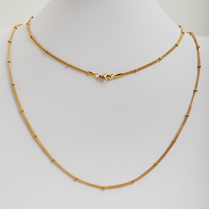 Łańcuszek ze stali chirurgicznej Bismarck z oponkami w kolorze złotym 60cmTo praktyczny półfabrykat do projektów biżuteryjnych. To materiał chętnie wybierany do biżuterii handmade ze względu na trwałość, estetykę i wygodę użytkowania.Element ozdobny ze stali chirurgicznej 316L może pełnić funkcję koralika, przekładki lub subtelnego detalu wykończeniowego w biżuterii handmade. Tego typu półfabrykaty pomagają uporządkować kompozycję, oddzielić większe elementy i nadać projektowi bardziej dopracowany wygląd.Rozmiar