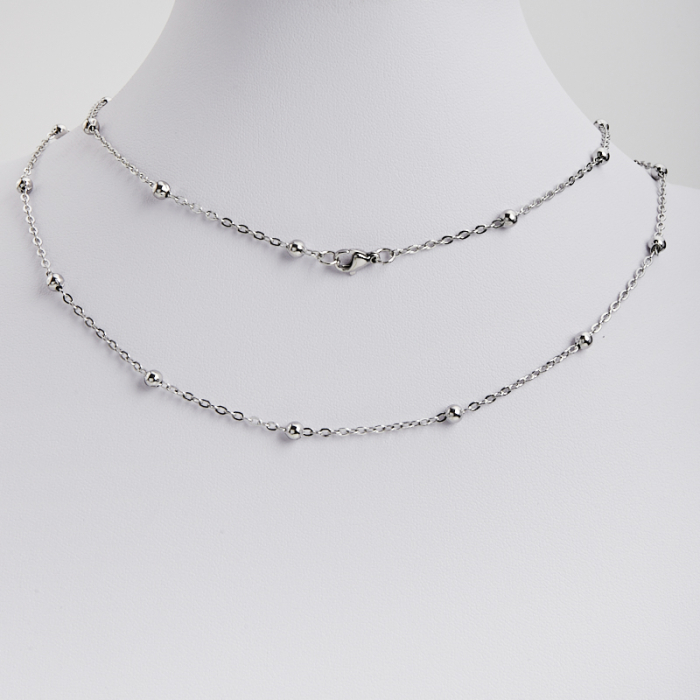 Łańcuszek ze stali chirurgicznej forza z kulkami w kolorze srebrnym 45cmTo starannie wykonany element do tworzenia biżuterii handmade. Stal chirurgiczna 316L dobrze sprawdza się w biżuterii noszonej na co dzień, ponieważ łączy trwałość z estetycznym wykończeniem.Element ozdobny ze stali chirurgicznej 316L może pełnić funkcję koralika, przekładki lub subtelnego detalu wykończeniowego w biżuterii handmade. Tego typu półfabrykaty pomagają uporządkować kompozycję, oddzielić większe elementy i nadać projektowi bardziej dopracowany wygląd.Rozmiar