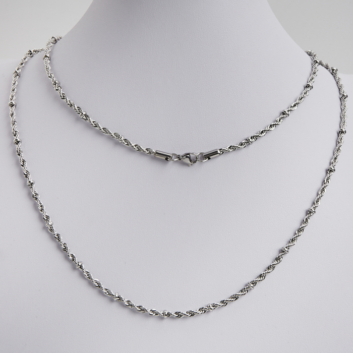 Łańcuszek ze stali chirurgicznej kordel w kolorze srebrnym 55cm