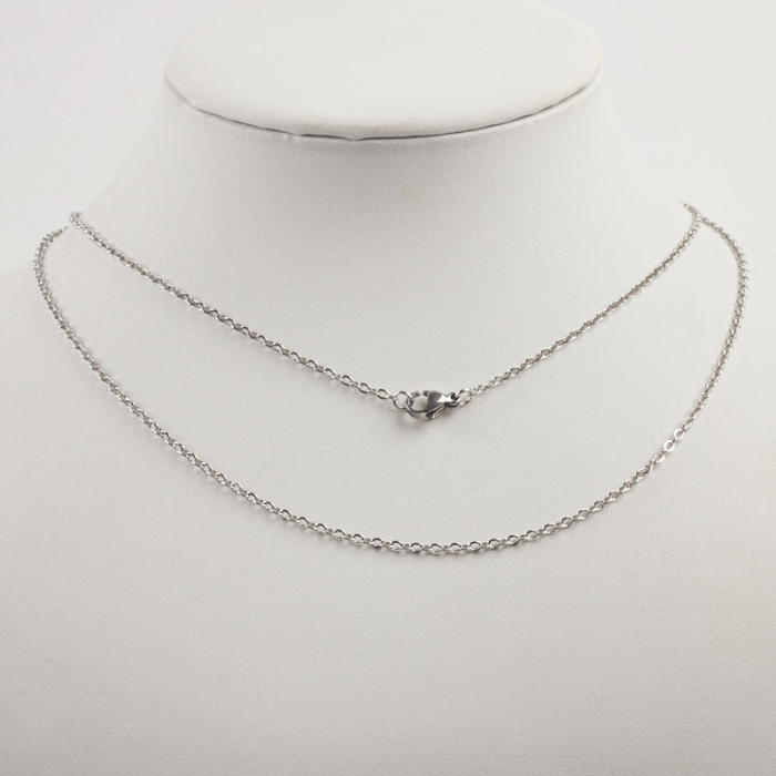 Łańcuszek ze stali chirurgicznej mini owal z zapięciem w kolorze srebrnym 45cmTo funkcjonalny komponent do biżuterii handmade. Stal chirurgiczna 316L jest ceniona za odporność na korozję i estetyczny wygląd w codziennym użytkowaniu.Zapięcie ze stali chirurgicznej 316L w kolorze