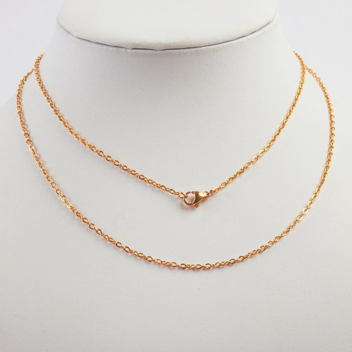 Łańcuszek ze stali chirurgicznej mini owal z zapięciem w kolorze złotym 75cm PVD