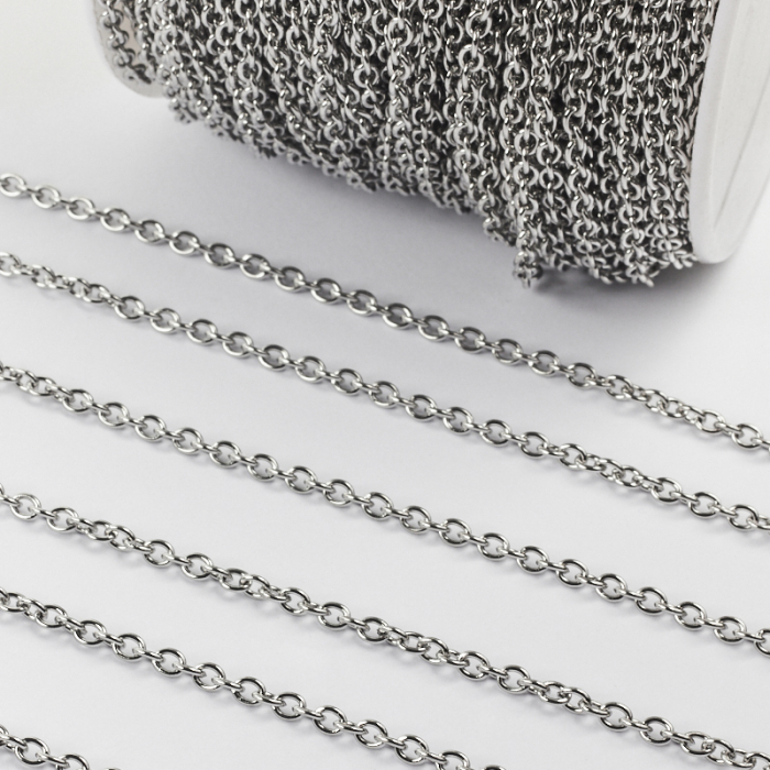 Łańcuszek ze stali chirurgicznej owale gładkie w kolorze srebrnym 4x3mm
