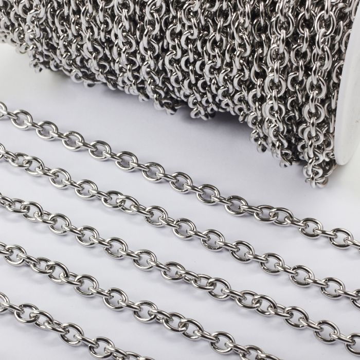 Łańcuszek ze stali chirurgicznej owale gładkie w kolorze srebrnym 8x6mm