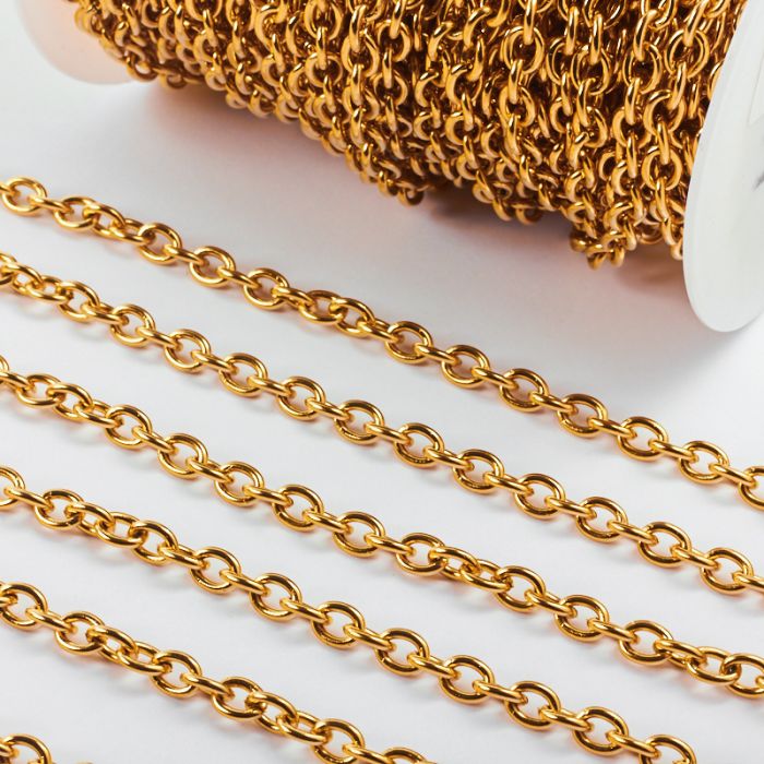 Łańcuszek ze stali chirurgicznej owale gładkie w kolorze złotym 8x6mm