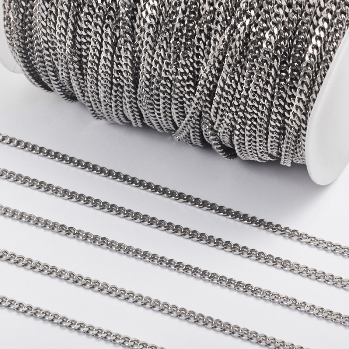 Łańcuszek ze stali chirurgicznej pancerka fasetowana w kolorze srebrnym 5x3,5mm