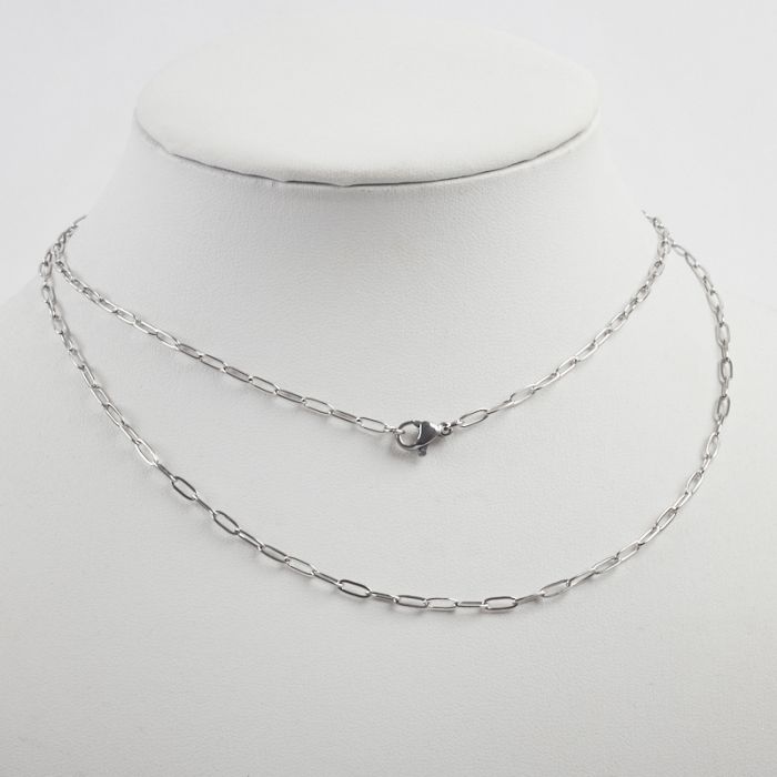 Łańcuszek ze stali chirurgicznej płaski owal podłużny z zapięciem w kolorze srebrnym 75cm
