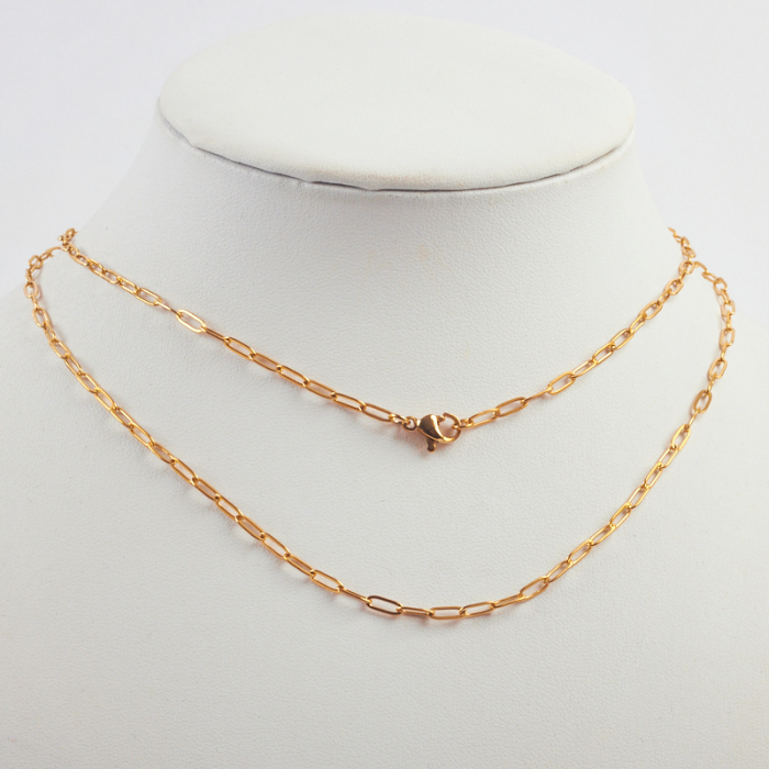Łańcuszek ze stali chirurgicznej płaski owal podłużny z zapięciem w kolorze złotym 75cmTo starannie wykonany element do tworzenia biżuterii handmade. Stal chirurgiczna 316L dobrze sprawdza się w biżuterii noszonej na co dzień, ponieważ łączy trwałość z estetycznym wykończeniem.Zapięcie ze stali chirurgicznej 316L w kolorze