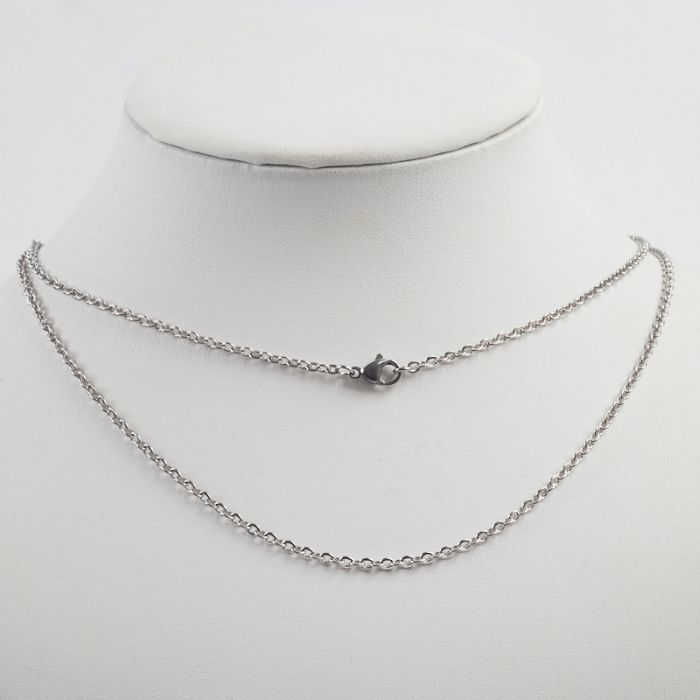 Łańcuszek ze stali chirurgicznej płaski owal z zapięciem w kolorze srebrnym 45cm