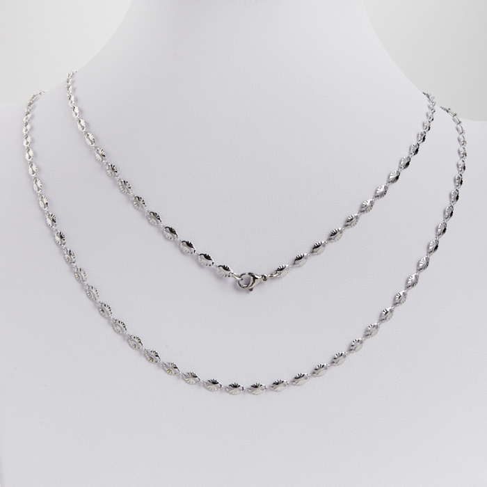 Łańcuszek ze stali chirurgicznej płaskie owale karbowane w kolorze srebrnym 55cm