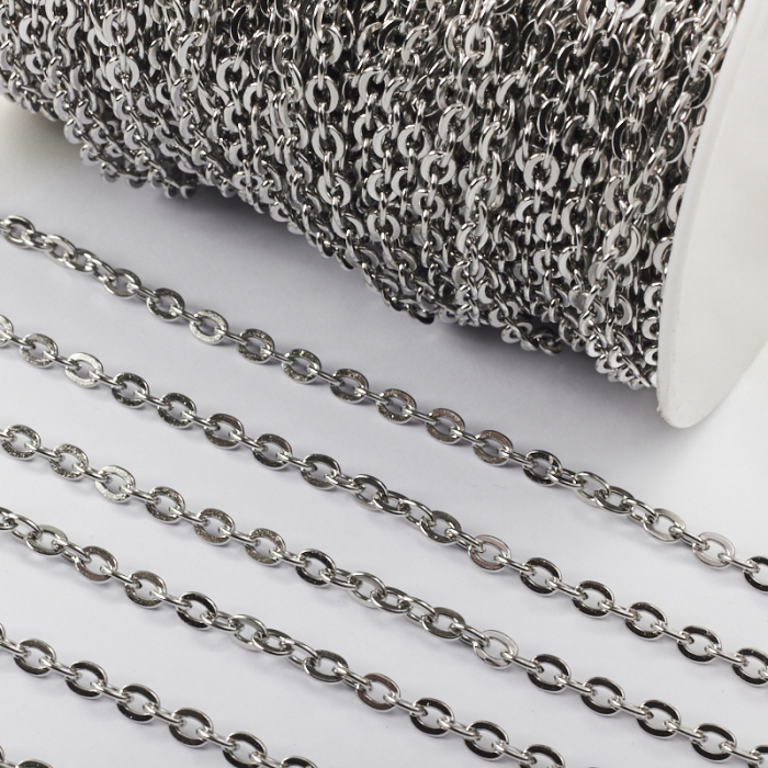 Łańcuszek ze stali chirurgicznej płaskie owale w kolorze srebrnym 6x4,5mm