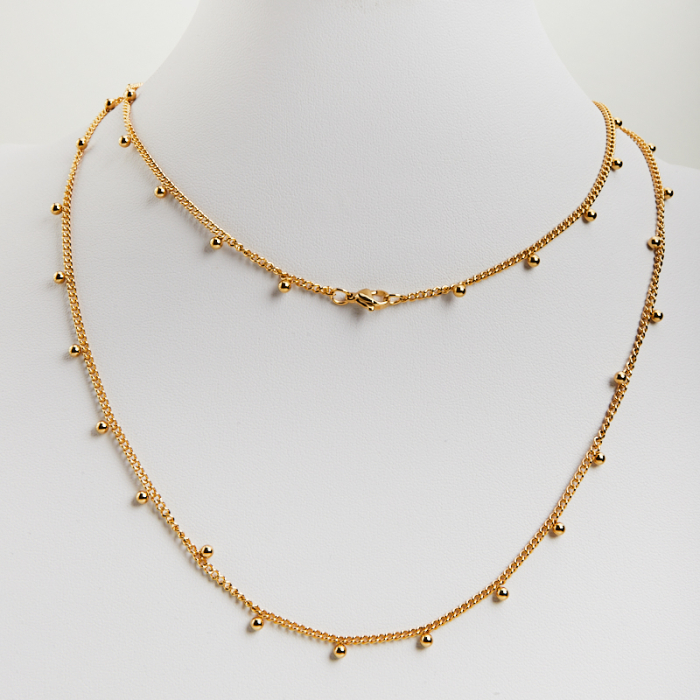 Łańcuszek ze stali chirurgicznej z kuleczami w kolorze złotym 50cmTo trwały i estetyczny element do tworzenia biżuterii handmade. W biżuterii handmade stal chirurgiczna 316L jest ceniona za dobry wygląd, odporność na korozję i wygodę codziennego użytkowania.Łańcuszek ze stali chirurgicznej 316L to praktyczna baza do tworzenia naszyjników, bransoletek i innych projektów biżuteryjnych. Może pełnić funkcję gotowego elementu nośnego albo stanowić część większej kompozycji z zawieszkami, łącznikami czy detalami dekoracyjnymi.Rozmiar