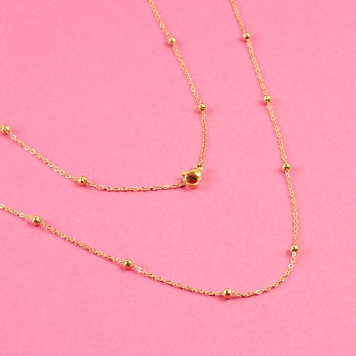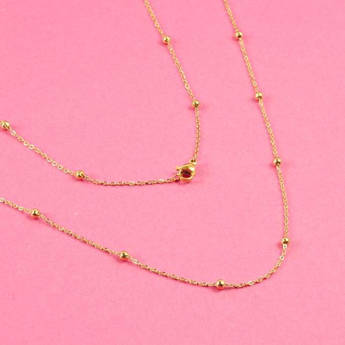 Łańcuszek ze stali chirurgicznej z kuleczkami w kolorze złotym 71cm