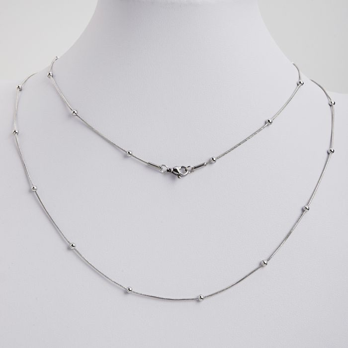 Łańcuszek ze stali chirurgicznej żmijka z kuleczkami w kolorze srebrnym 50cm