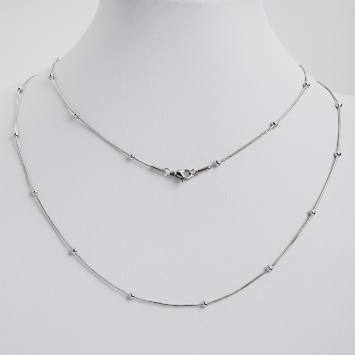 Łańcuszek ze stali chirurgicznej żmijka z kuleczkami w kolorze srebrnym 50cmTo praktyczny półfabrykat do projektów biżuteryjnych. W biżuterii handmade stal chirurgiczna 316L jest ceniona za dobry wygląd, odporność na korozję i wygodę codziennego użytkowania.Łańcuszek ze stali chirurgicznej 316L to praktyczna baza do tworzenia naszyjników, bransoletek i innych projektów biżuteryjnych. Może pełnić funkcję gotowego elementu nośnego albo stanowić część większej kompozycji z zawieszkami, łącznikami czy detalami dekoracyjnymi.Rozmiar