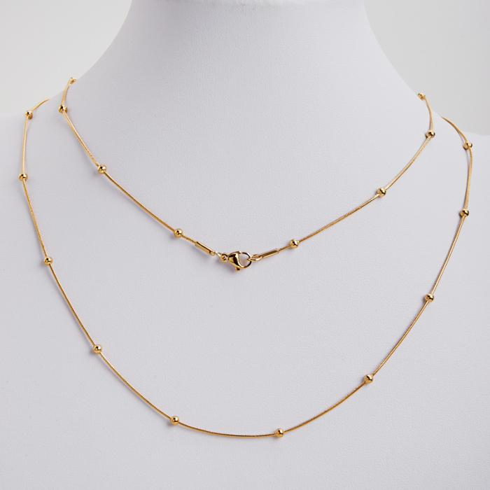Łańcuszek ze stali chirurgicznej żmijka z kuleczkami w kolorze złotym 50cm