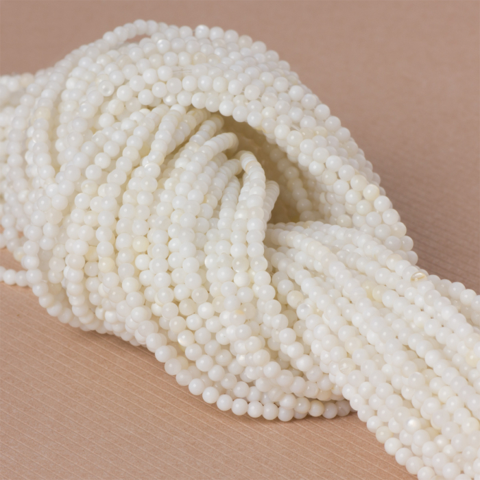 Masa perłowa kulka biała 3mm - na sznurze