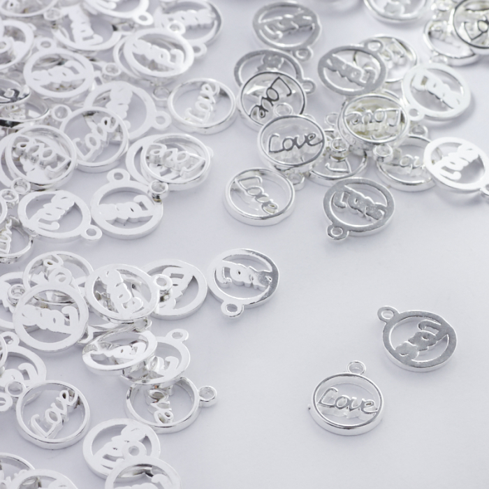 Metalowa zawieszka kółko z napisem love 10mm