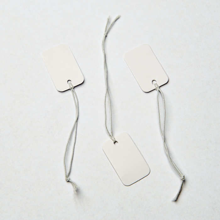 Metka z gumką do bizuterii biała 15x25mm
