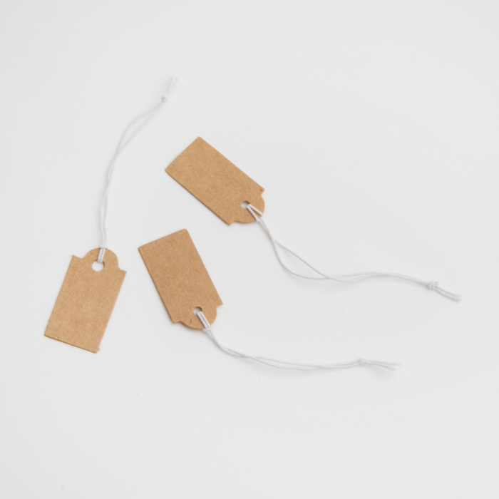 Metka z gumką do bizuterii brązowa 13x26mm