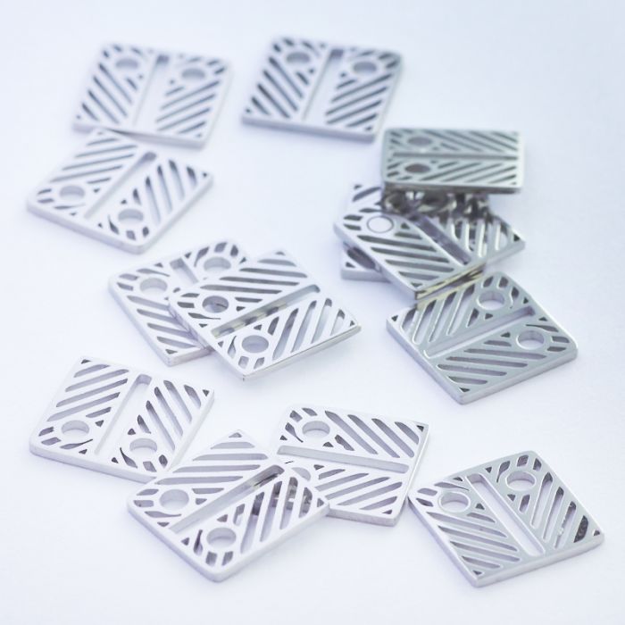 Mini zawieszka ze stali chirurgicznej celebrytka kwadrat ażurowy w kolorze srebrnym 8,4mm