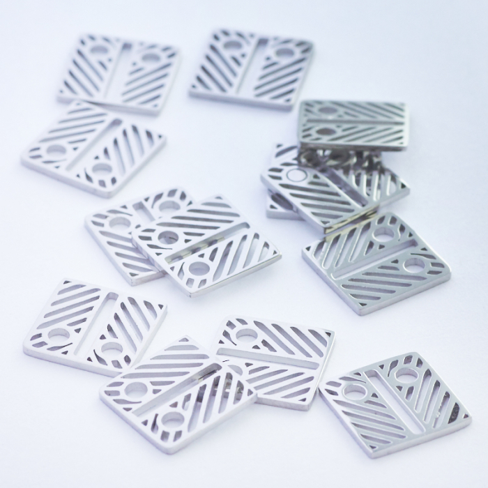 Mini zawieszka ze stali chirurgicznej celebrytka kwadrat ażurowy w kolorze srebrnym 8,4mmTo starannie wykonany element do tworzenia biżuterii handmade. Stal chirurgiczna 316L dobrze sprawdza się w biżuterii noszonej na co dzień, ponieważ łączy trwałość z estetycznym wykończeniem.Łącznik ze stali chirurgicznej 316L to praktyczny i dekoracyjny element, który pozwala w estetyczny sposób połączyć różne części biżuterii. Sprawdza się w bransoletkach, naszyjnikach i kolczykach, gdzie liczy się zarówno funkcjonalność, jak i spójny wygląd projektu.Forma lub motyw