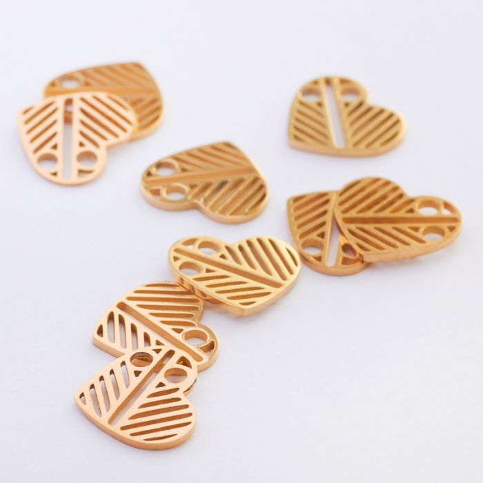 Mini zawieszka ze stali chirurgicznej celebrytka serce wycinane w kolorze złotym 9mm