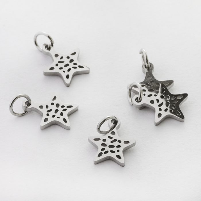 Mini zawieszka ze stali chirurgicznej gwiazdka ażurowa w kolorze srebrnym 9mm