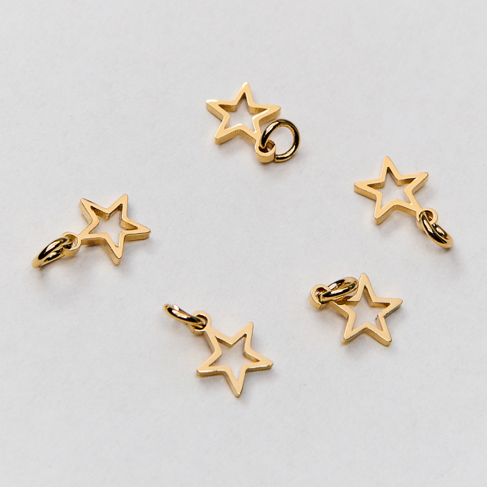 Mini zawieszka ze stali chirurgicznej gwiazdka wycięta w kolorze złotym 7mm PVDTo dopracowany produkt ze stali chirurgicznej 316L, który łączy praktyczność z estetycznym wyglądem. Stal chirurgiczna 316L jest ceniona za odporność na korozję i estetyczny wygląd w codziennym użytkowaniu. Wykończenie w kolorze złotym uzyskane metodą PVD.Zawieszka ze stali chirurgicznej 316L to dekoracyjny element, który nadaje biżuterii charakteru i pozwala tworzyć spersonalizowane projekty. Świetnie sprawdza się w naszyjnikach, bransoletkach, kolczykach oraz drobnych charmsach.Forma lub motyw