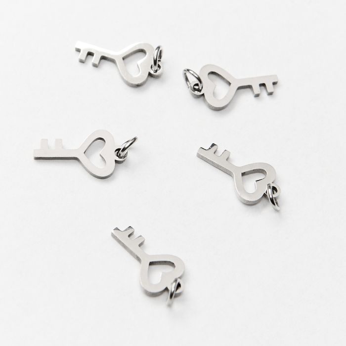 Mini zawieszka ze stali chirurgicznej kluczyk z serduszkiem w kolorze srebrnym 12mm
