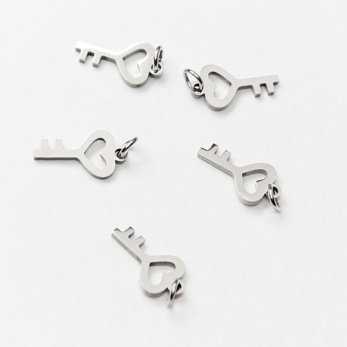 Mini zawieszka ze stali chirurgicznej kluczyk z serduszkiem w kolorze srebrnym 12mmTo starannie wykonany produkt ze stali chirurgicznej 316L, który dobrze prezentuje się w codziennym użytkowaniu. Stal chirurgiczna 316L dobrze sprawdza się w biżuterii noszonej na co dzień, ponieważ łączy trwałość z estetycznym wykończeniem.Zawieszka ze stali chirurgicznej 316L to dekoracyjny element, który nadaje biżuterii charakteru i pozwala tworzyć spersonalizowane projekty. Świetnie sprawdza się w naszyjnikach, bransoletkach, kolczykach oraz drobnych charmsach.Forma lub motyw