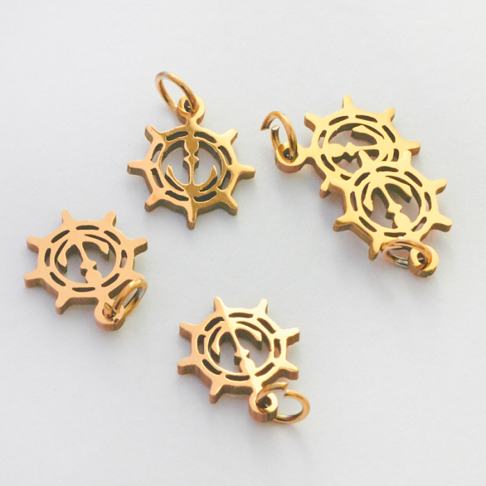 Mini zawieszka ze stali chirurgicznej koło sterowe w kolorze złotym 12,5mmTo starannie wykonany produkt ze stali chirurgicznej 316L, który dobrze prezentuje się w codziennym użytkowaniu. Stal chirurgiczna 316L dobrze sprawdza się w biżuterii noszonej na co dzień, ponieważ łączy trwałość z estetycznym wykończeniem.Zawieszka ze stali chirurgicznej 316L to dekoracyjny element, który nadaje biżuterii charakteru i pozwala tworzyć spersonalizowane projekty. Świetnie sprawdza się w naszyjnikach, bransoletkach, kolczykach oraz drobnych charmsach.Forma lub motyw