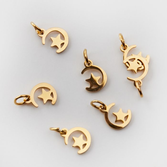 Mini zawieszka ze stali chirurgicznej księżyc z gwiazdką w kolorze złotym 8,5mm PVD
