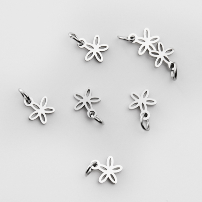 Mini zawieszka ze stali chirurgicznej kwiatek w kolorze srebrnym 8mmTo estetyczny element biżuteryjny ze stali chirurgicznej 316L, chętnie wybierany do nowoczesnych projektów. Stal chirurgiczna 316L jest ceniona za odporność na korozję i estetyczny wygląd w codziennym użytkowaniu.Zawieszka ze stali chirurgicznej 316L to dekoracyjny element, który nadaje biżuterii charakteru i pozwala tworzyć spersonalizowane projekty. Świetnie sprawdza się w naszyjnikach, bransoletkach, kolczykach oraz drobnych charmsach.Forma lub motyw