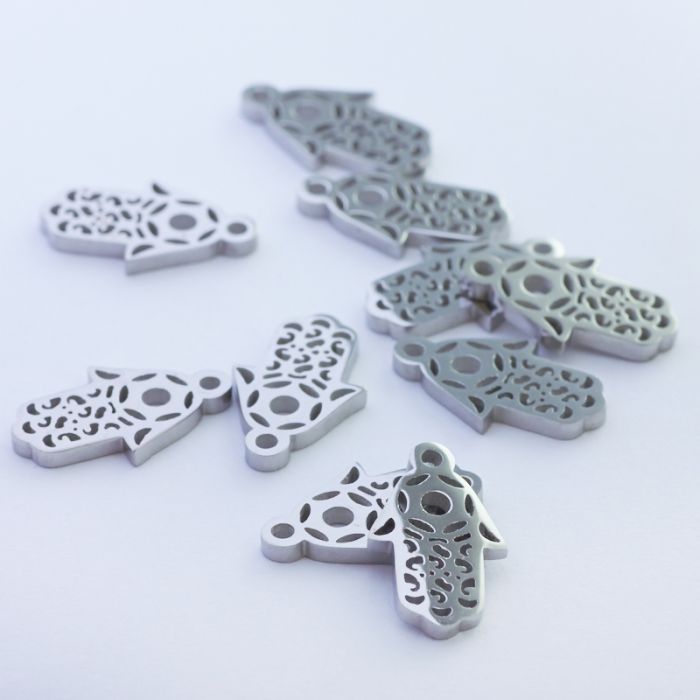 Mini zawieszka ze stali chirurgicznej ręka Fatimy w kolorze srebrnym 15mm