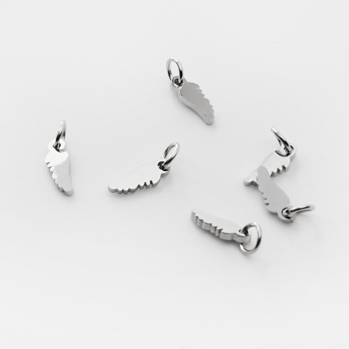 Mini zawieszka ze stali chirurgicznej skrzydełko pełne w kolorze srebrnym 8,5mmTo estetyczny element biżuteryjny ze stali szlachetnej, chętnie wybierany do nowoczesnych projektów. W biżuterii handmade stal szlachetna jest ceniona za dobry wygląd, odporność na korozję i wygodę codziennego użytkowania.Zawieszka ze stali szlachetnej to dekoracyjny element, który nadaje biżuterii charakteru i pozwala tworzyć spersonalizowane projekty. Świetnie sprawdza się w naszyjnikach, bransoletkach, kolczykach oraz drobnych charmsach.Forma lub motyw