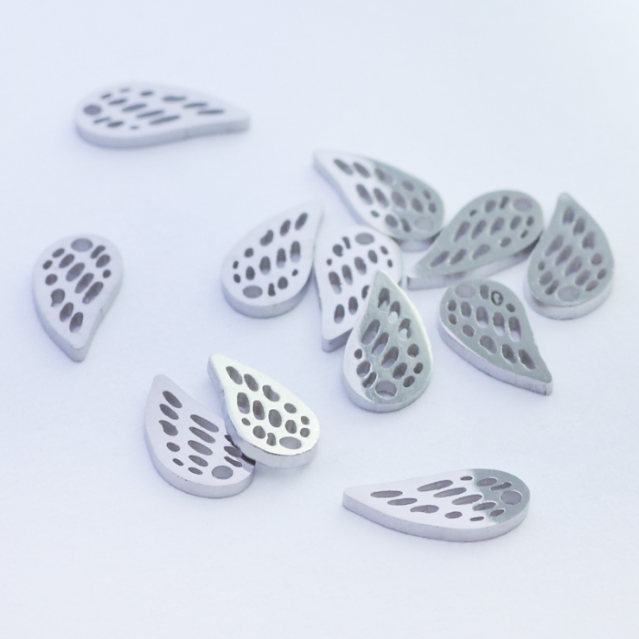 Mini zawieszka ze stali chirurgicznej skrzydełko w kolorze srebrnym 7,5mmTo trwały element biżuterii lub półfabrykat jubilerski, który dobrze sprawdza się w codziennych realizacjach. To materiał chętnie wybierany do biżuterii handmade ze względu na trwałość, estetykę i wygodę użytkowania.Zawieszka ze stali chirurgicznej 316L to dekoracyjny element, który nadaje biżuterii charakteru i pozwala tworzyć spersonalizowane projekty. Świetnie sprawdza się w naszyjnikach, bransoletkach, kolczykach oraz drobnych charmsach.Forma lub motyw