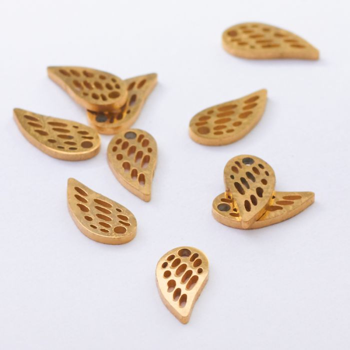 Mini zawieszka ze stali chirurgicznej skrzydełko w kolorze złotym 7,5mm