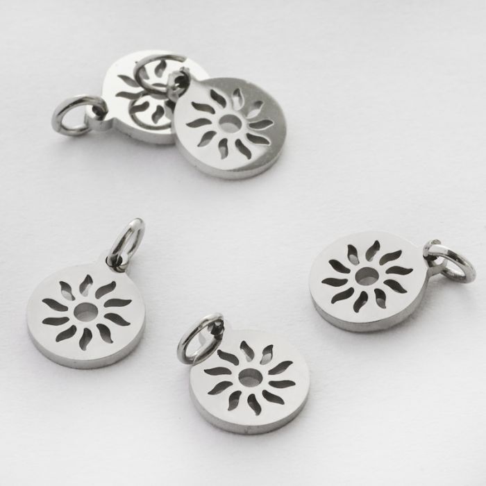Mini zawieszka ze stali chirurgicznej słoneczko w kółku w kolorze srebrnym 8mm