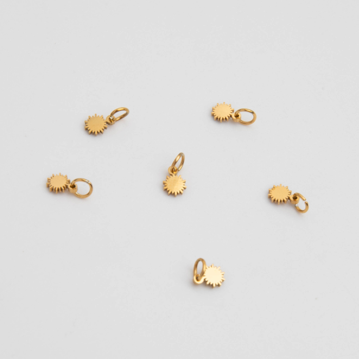 Mini zawieszka ze stali chirurgicznej słoneczko w kolorze złotym 5,5mmTo starannie wykonany produkt ze stali chirurgicznej 316L, który dobrze prezentuje się w codziennym użytkowaniu. W biżuterii handmade stal chirurgiczna 316L jest ceniona za dobry wygląd, odporność na korozję i wygodę codziennego użytkowania.Zawieszka ze stali chirurgicznej 316L to dekoracyjny element, który nadaje biżuterii charakteru i pozwala tworzyć spersonalizowane projekty. Świetnie sprawdza się w naszyjnikach, bransoletkach, kolczykach oraz drobnych charmsach.Forma lub motyw