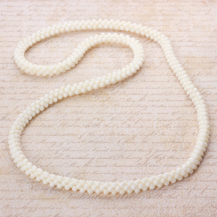 Naszyjnik pleciony z kulek korala biały 80cm