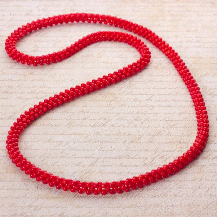 Naszyjnik pleciony z kulek korala czerwony 80cm