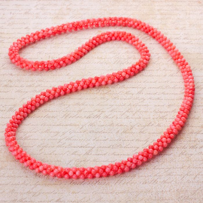 Naszyjnik pleciony z kulek korala różowy 80cm