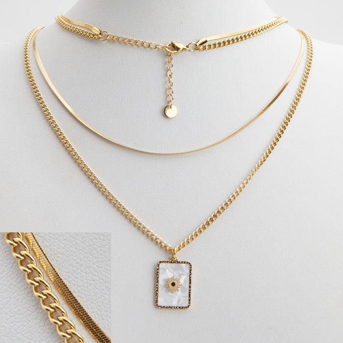 Naszyjnik podwójny z zawieszką z masy perłowej w kolorze złotym 47cm PVD