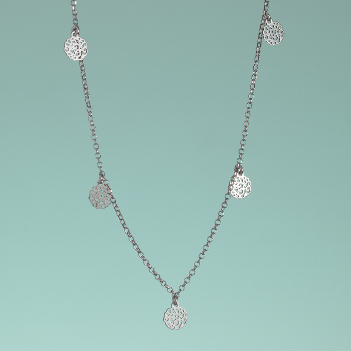 Naszyjnik rodowany z zawieszkami fantazyjnymi AG925 42 cm