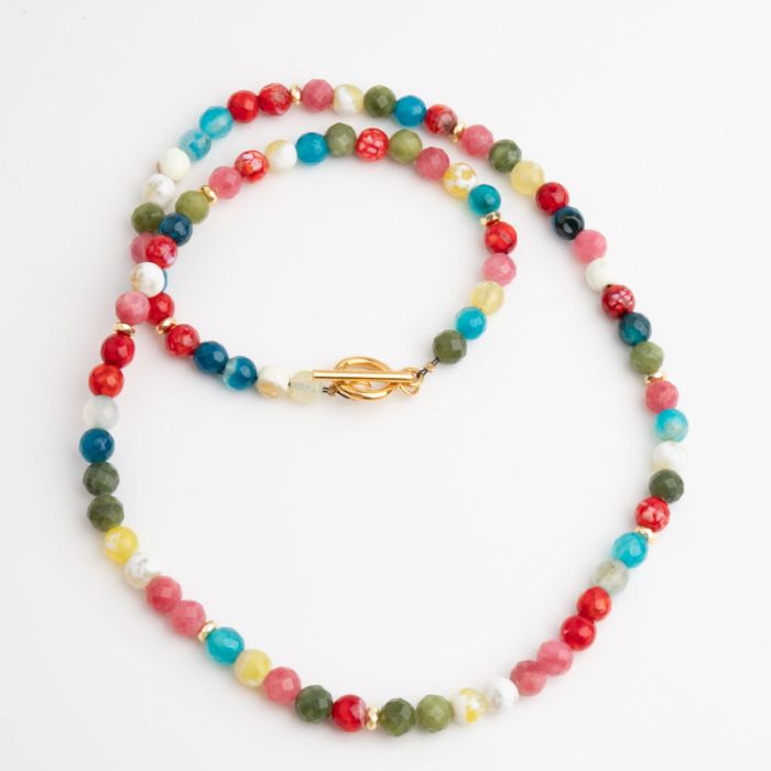 Naszyjnik z fasetowanych agatów i złotego hematytu