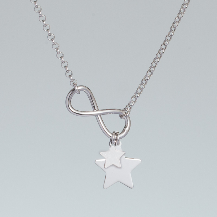 Naszyjnik z gwiazdkami i nieskończonością rodowany AG925 42 - 45 cm