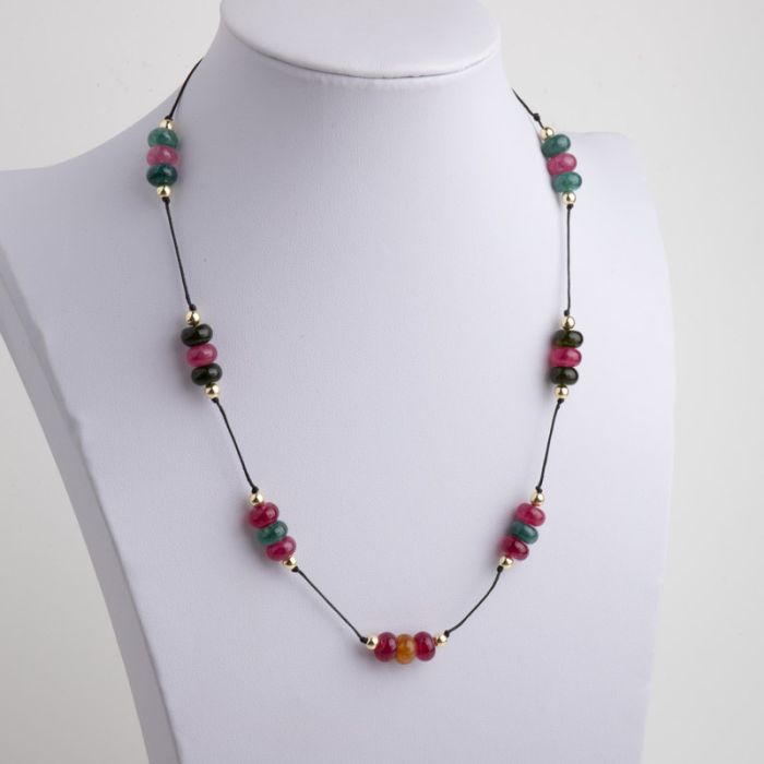 Naszyjnik z kolorowych agatów na czarnym sznurku z regulowanym zapięciem