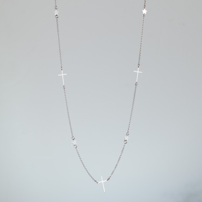 Naszyjnik z krzyżami i gwiazdkami rodowany AG925 67 - 70 cm